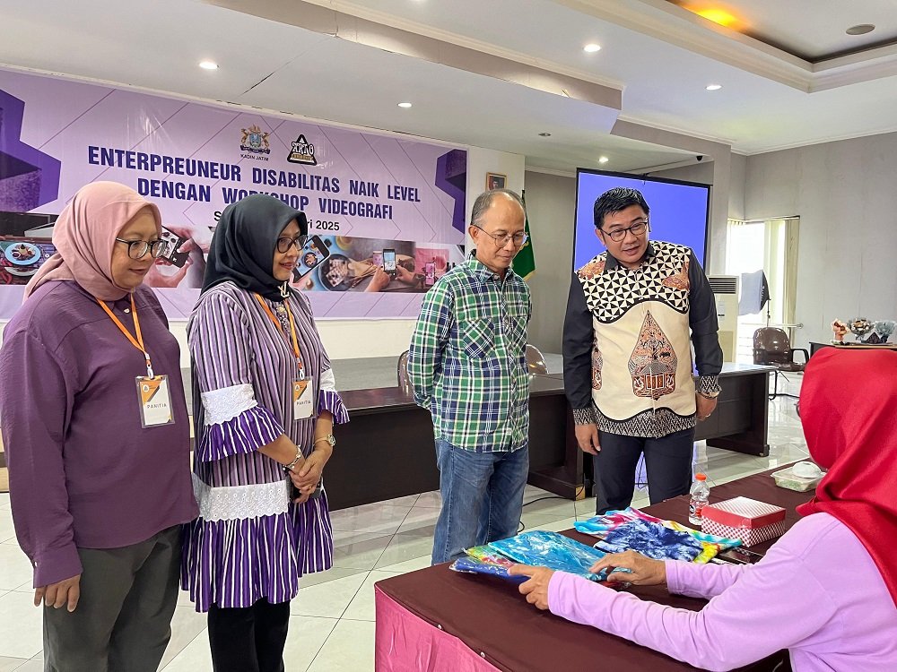 Agar usaha mereka kian berkembang, maka Kadin Jatim bersama artO Community menggelar Workshop Videografi dan Fotografi untuk pemasaran produk di media daring atau online di Graha Kadin Jatim, Surabaya, Sabtu (18/1/2025). Kegiatan diikuti oleh sekitar 65 orang penyandang disabilitas dari seluruh wilayah Jatim diantaranya dari Malang, Banyuwangi, Pasuruan dan Bangkalan Madura.
