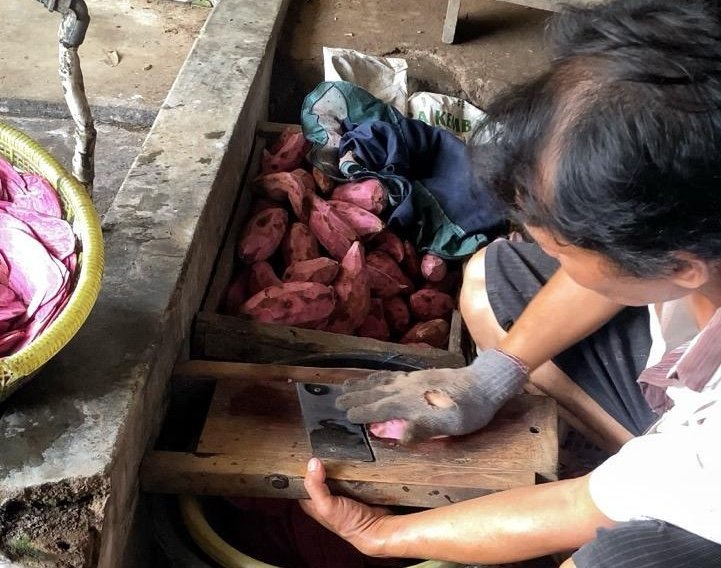 “Kami menggunakan alat sederhana untuk mengolah keripik ubi. Setiap hari, kami mampu memproduksi sekitar 10 hingga 12 ball dengan berat total 45 kg,” ungkap Win.