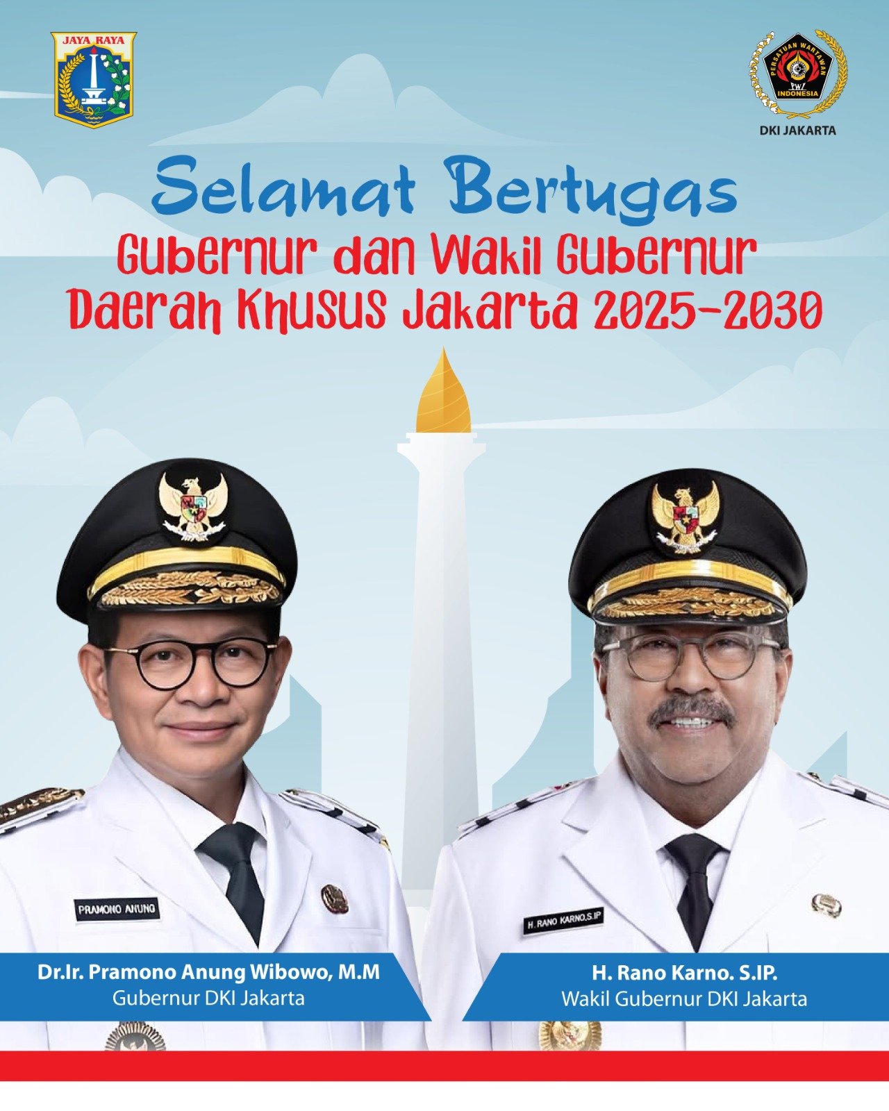 Minke.id – Ketua Persatuan Wartawan Indonesia (PWI) Jaya, Kesit B Handoyo, menyampaikan ucapan selamat kepada Pramono Anung dan Rano Karno yang resmi dilantik sebagai Gubernur dan Wakil Gubernur DKI Jakarta oleh Presiden Prabowo Subianto pada hari ini, Kamis (20/2/2025). Kesit berharap kepemimpinan baru ini dapat membawa perubahan positif bagi ibu kota dan meningkatkan kesejahteraan masyarakat Jakarta.