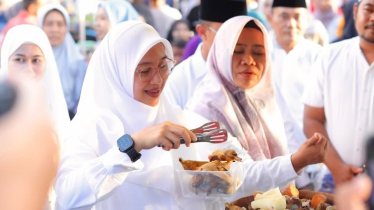 Saat berkeliling di pasar takjil Marina Boom, Ipuk terlihat berbelanja beberapa hidangan khas Ramadan seperti pisang rebus dan gulai kaldu kacang hijau.