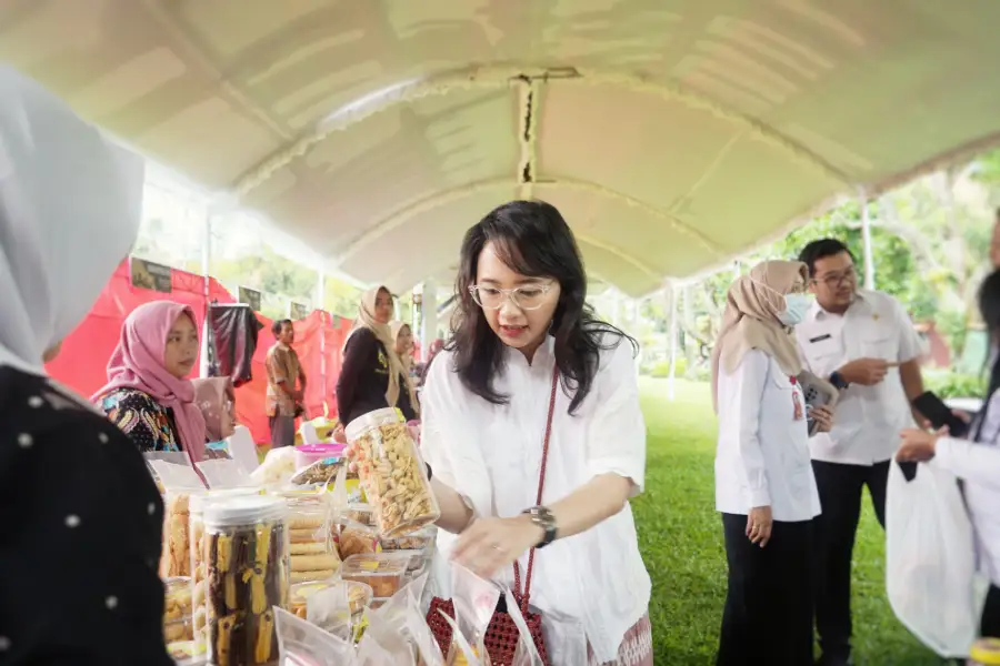 Mbak Cicha sendiri tak hanya hadir sebagai penyelenggara, tetapi juga meninjau langsung stan UMKM dan bahkan ikut membeli berbagai produk makanan olahan sebagai bentuk dukungannya terhadap usaha kecil.