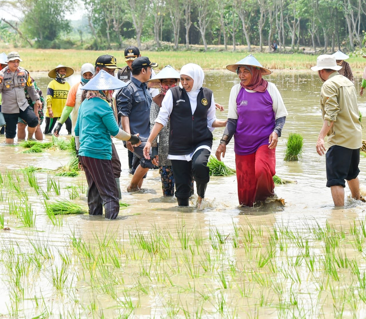 Khofifah hadir di tengah sawah, mendengar keluhan petani, dan mengubahnya menjadi solusi. Ia bukan sekadar memerintah dari balik meja, tapi turun langsung ke lapangan—sebagai “ibu” yang memahami denyut kehidupan petani.