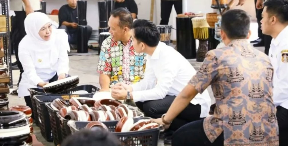 Dalam kunjungan tersebut, Khofifah dan Wapres Gibran menyaksikan proses pembuatan kendang jimbe dan rebana yang tak hanya mendongkrak ekonomi lokal, tapi juga menyerap tenaga kerja dan memberdayakan masyarakat desa. Saat ini, UMKM Budi Luhur melibatkan 30 pekerja dan menggandeng 40 perajin lokal.
