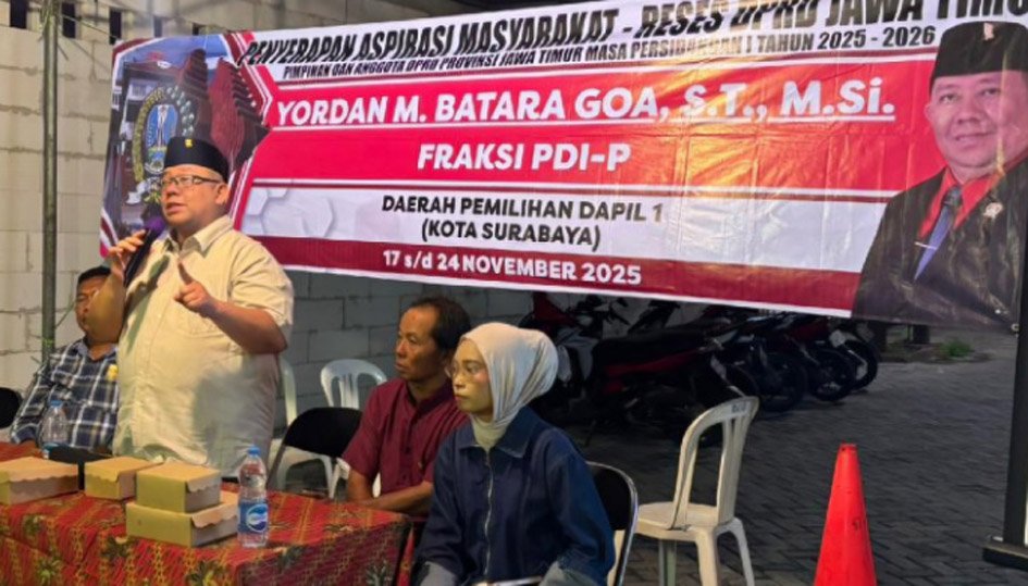 Minke.id – Anggota Fraksi PDI Perjuangan DPRD Jawa Timur, Yordan M. Batara-Goa, menyerap aspirasi masyarakat yang menghadapi kendala akses permodalan untuk mengembangkan usaha mikro, kecil, dan menengah (UMKM). Hal itu disampaikan dalam kegiatan reses di Kelurahan Petemon, Kecamatan Sawahan, Minggu (23/11/2025) malam.