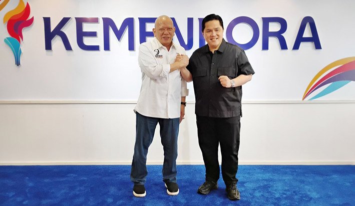 iniSO.co – Ketua Umum Pengurus Besar Muaythai Indonesia (PBMI) AA LaNyalla Mahmud Mattalitti bersama jajaran menemui Menteri Pemuda dan Olahraga (Menpora) RI, Erick Thohir dalam rangka melaporkan agenda kerja dan program organisasi cabang olahraga Muaythai di tahun 2026.