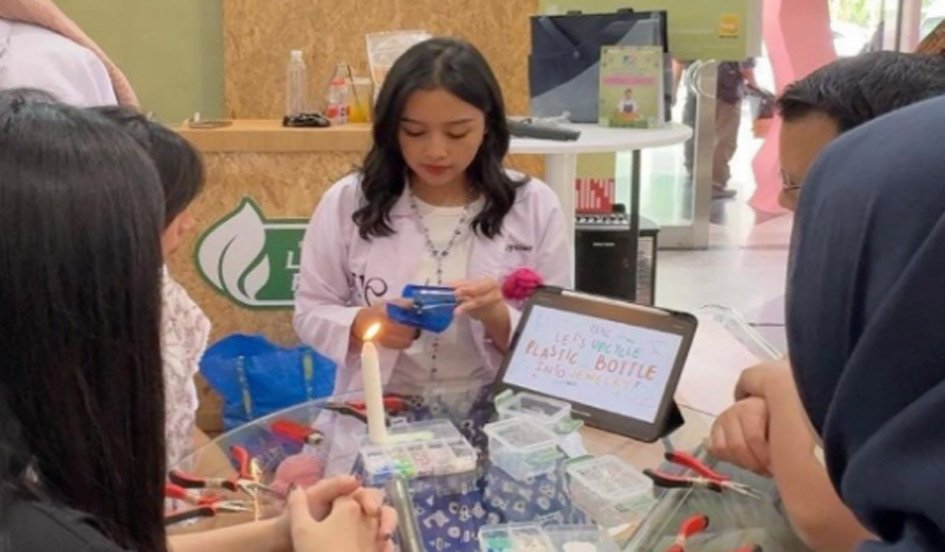Tak hanya itu, lebih dari 1 ton limbah plastik telah diolah, menekan emisi karbon sekitar 2 ton CO₂e, sekaligus memberikan dampak ekonomi langsung kepada para pengumpul sampah dan komunitas perajin lokal, termasuk keterlibatan 13 perempuan artisan dalam proses produksi.