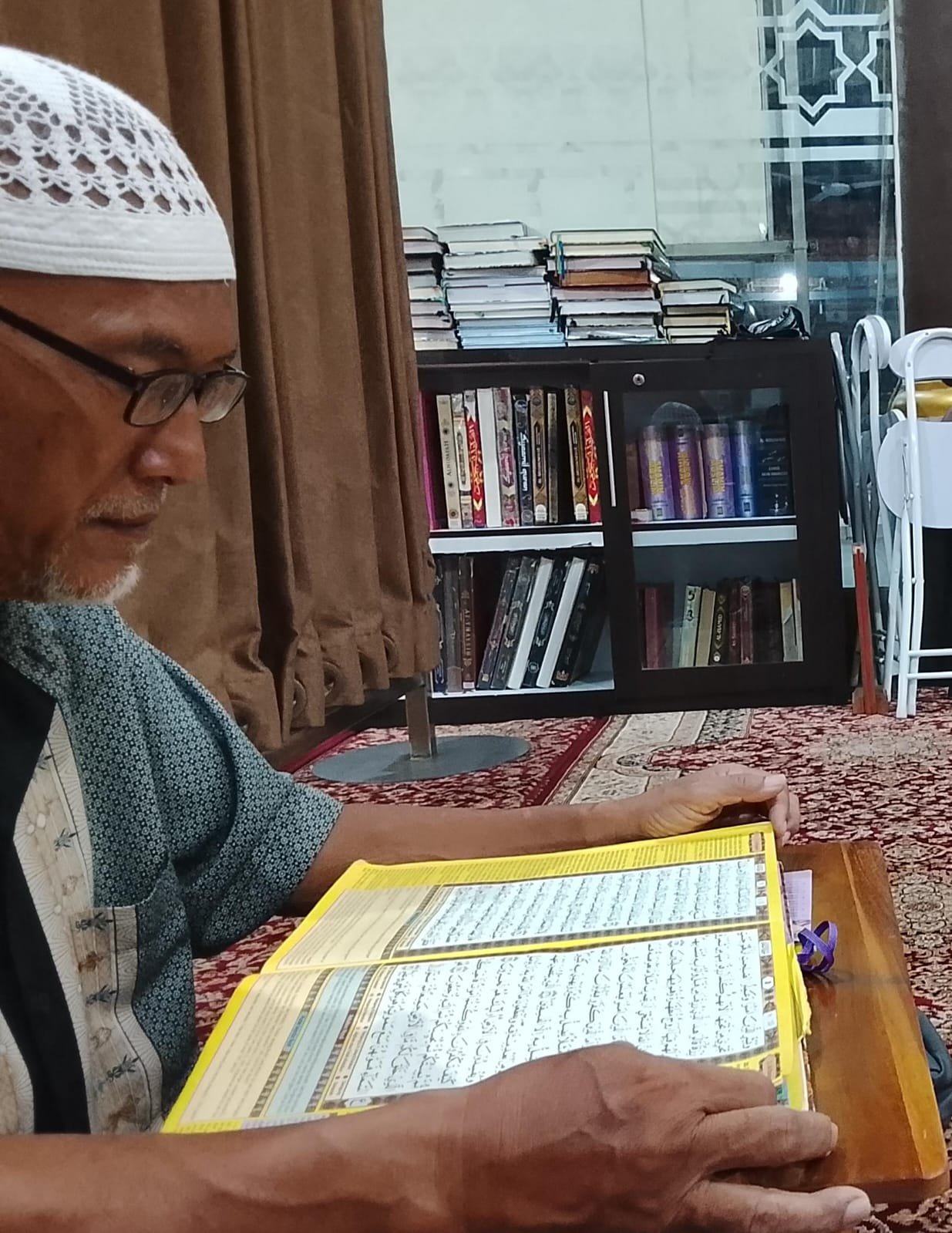 Ketika dia mengucapkan:” Iyyaka na’budu wa Iyyaka nasta’in. (Hanya kepada ENGKAULAH kami menyembah dan hanya kepada ENGKAULAH kami memohon pertolongan).